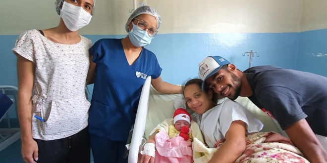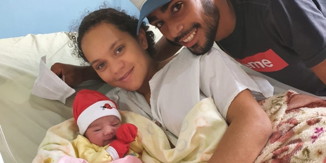 O primeiro bebê do ano nascido no Hospital de Pocinhos é uma menina e nasceu através de um parto humanizado, com assistência do médico plantonista Juan Schirato, da enfermeira Adrielly e da técnica de enfermagem, Lucivânia.